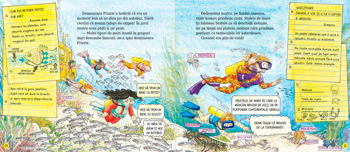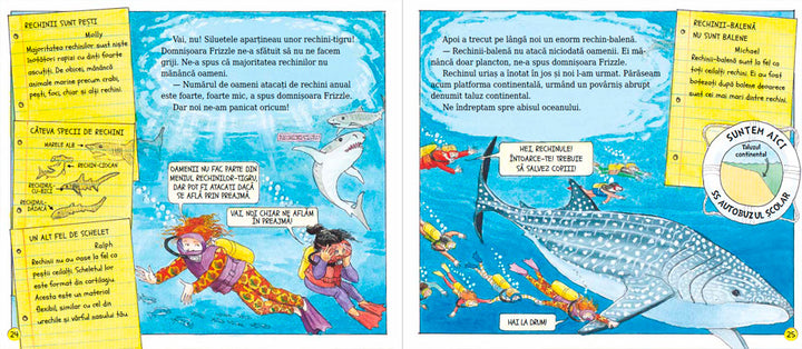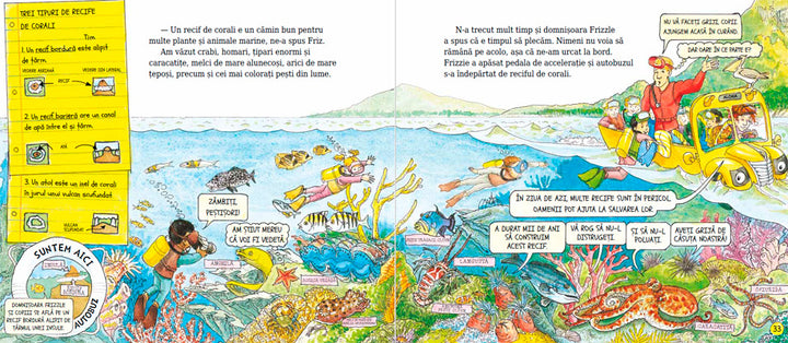 Domnișoara Frizzle nu putea să ocolească un asemenea teritoriu fascinant cum este lumea adâncurilor, iar excursia în care îi invită pe norocoșii săi elevi, cu ajutorul Autobuzului magic transformat în submarin, devine o lecție extraordinară despre natură și în același timp o aventură de neuitat.