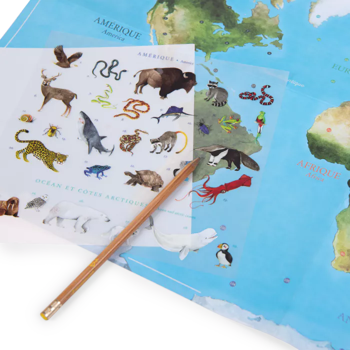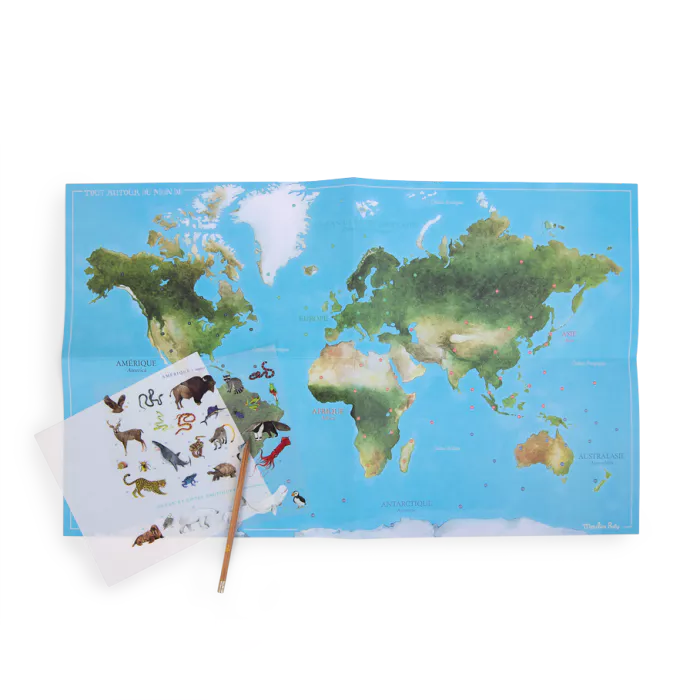 Hartă Mondială Interactivă cu 107 Animale – Moulin Roty