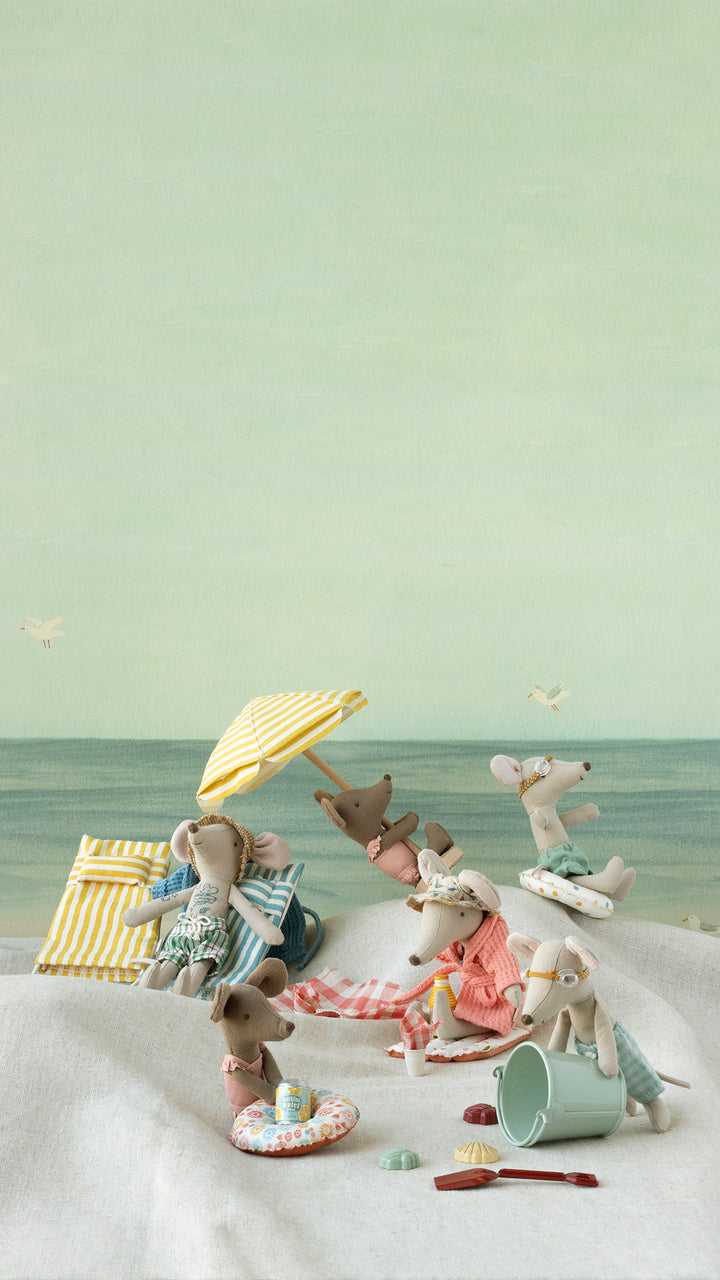 Timp de vacanță. O plută realizată din material acoperit pentru un aspect autentic. Nu este impermeabilă, așadar joacă-te doar pe sol uscat. Doar în imaginația ta plutește pe apă. Acest set este potrivit pentru șoricei de până la dimensiunea mamă/tată.