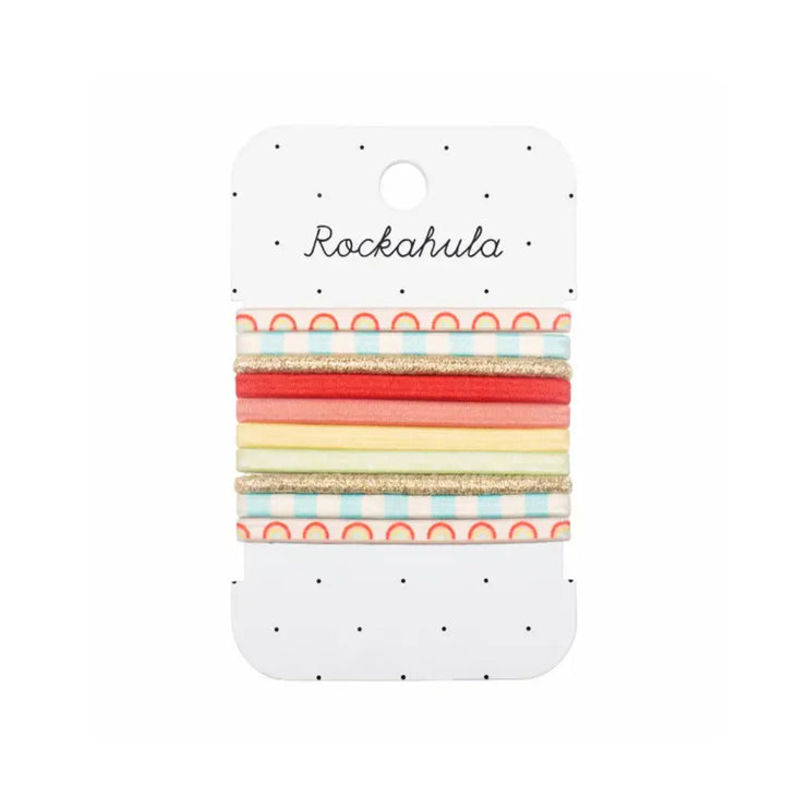 Combina și potrivește după voie cu acest set vesel de elastice colorate! Cu o selecție de modele în nuanțe strălucitoare de curcubeu, aceste elastice sunt alegerea perfectă pentru coafuri de zi cu zi și pentru a adăuga un strop de magie curcubeu în păr.