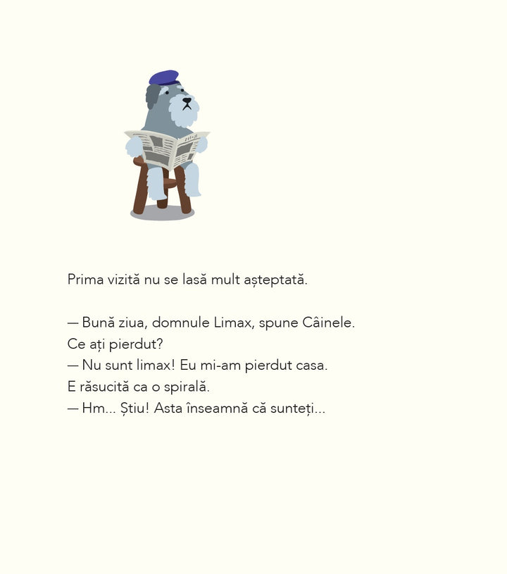 O poveste plină de surprize, care invită copiii să participe la lectură și să ghicească animalele „deghizate” în alte specii. Ce este oare un limax care și-a pierdut casa? Limax sau melc? Iar o pisică fără șal la gât este pisică sau leu? Descoperim cu mirare că nici unul dintre animalele care vin la biroul de obiecte pierdute nu este cine pare a fi. Dar Domnul Câine? La final, după o zi de muncă foarte agitată, aflăm că și Domnul Câine se deghizase perfect în Bunicul, rămas bolnav acasă. Nu-i așa că nu l-ați recunoscut?